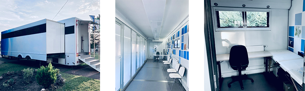 A kamion három klimatizált, önálló vizsgálóhelyiséggel rendelkezik, saját áramellátással és modern orvosi eszközparkkal, így a vizsgálatok gyorsan, kényelmesen és szervezetten végezhetők, a napi munkamenet megszakítása nélkül.